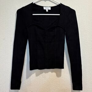 & Other Stories Black Square Neck Hook & Eye Front Corset Knit Top Size XS