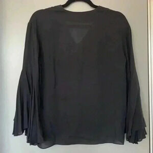 & Other Stories Black V-Neck Blouse with Flared Sleeves Size 4