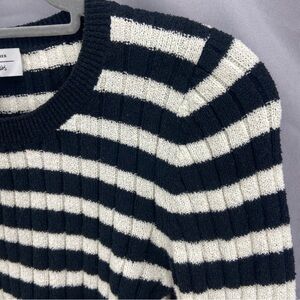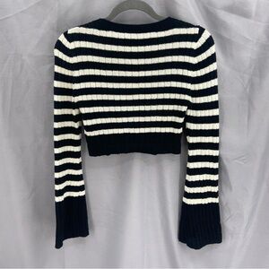 & Other Stories Black and White Striped Cropped Sweater with Bell Sleeves Size Small