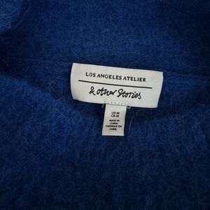 Embrace the cold with this striking blue turtleneck sweater from & Other Stories. Featuring a chunky ribbed knit and a high rolled collar, this cozy piece is perfect for adding a pop of color to your winter wardrobe. Its relaxed silhouette and cropped length make it a stylish choice for casual outings.