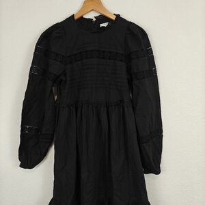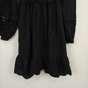 & Other Stories Boho Black Poplin Lace Cotton Long Sleeve Mini Dress Black SZ 0