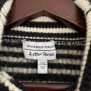 & Other Stories Boxy Heavyweight Striped 3/4 Sleeve Wool Blend Turtleneck- Small