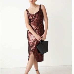 & Other Stories Chocolate Brown Sequence Dress Mint Condition Size 6