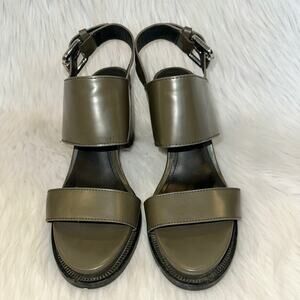 & Other Stories Chunky Slingback Heels Leather Sandal, Olive Green