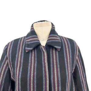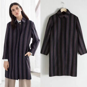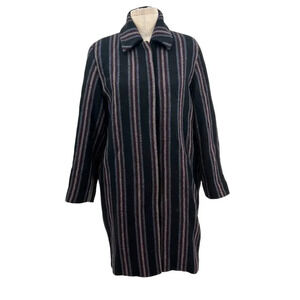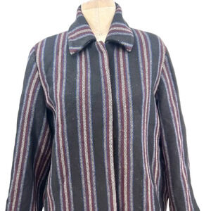 & Other Stories Coat Jacket Blanket Stripe Wool Blend Navy Blue Maroon Size US 2