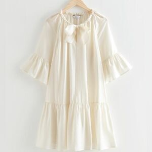 & Other Stories Cream Dress Bow Neck Ruffle Hem Size XS • NEW WITH TAGS •