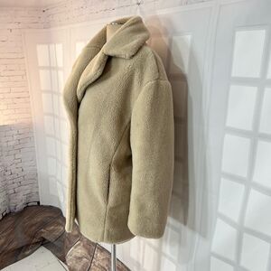 & Other Stories Cream Notch Lapel Mid Length Teddy Pea Coat Size 2
