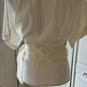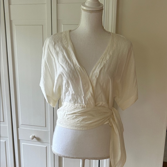 Beautiful ivory wrap top,by & other stories. In excellent preowned condition, size 4 fits true to size. My mannequin is a size 4 to give you an idea of how it fits. You will want to wear a camisole underneath, as it is sheer..