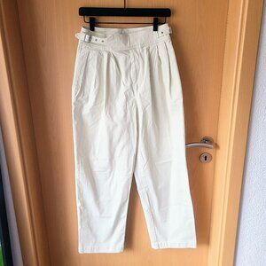 & Other Stories Cream-White High Waisted Pleated Cotton Trouser Pants Size 6
