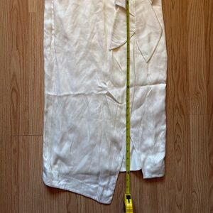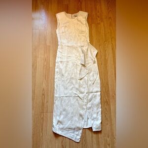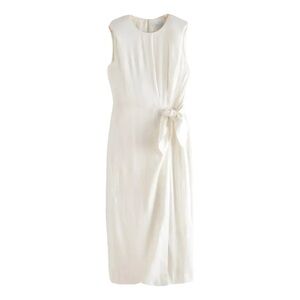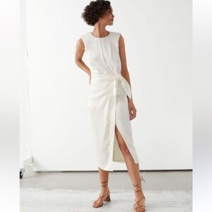 & other stories Ivory midi dress with side split, padding on shoulders & tie bow at waist.