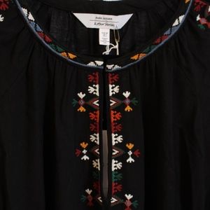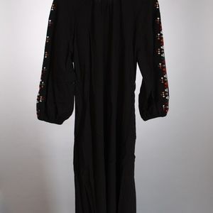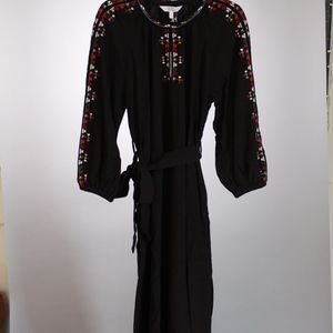 NWT Embroidered cotton blend maxi peasant dress with a cinched waist and gathered billowy sleeves.