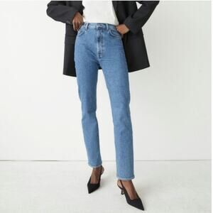 & Other Stories Favorite Cut Straight Leg Jeans Slim Cut High Rise Blue Denim 30