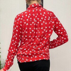 & Other Stories Floral Button-Up Shirt Long Sleeve Size 10 Red