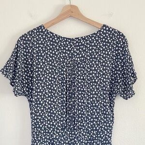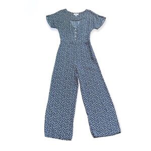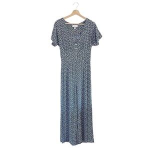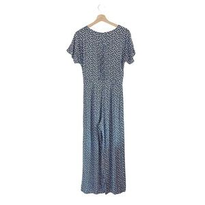 & Other Stories Floral V Neck Button Down Short Sleeve Jumpsuit in Blue & White Print Size 4 / Small.