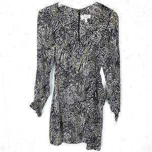 & Other Stories Flowy Leopard Print Mini Dress Puff Sleeves Side Tie Skirt