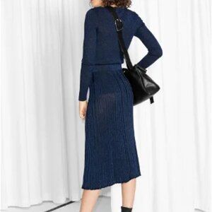 Other Stories Glittery Pleat Rib Midi Skirt Navy Size XS