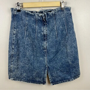 & Other Stories High Waist Mini Skirt Size 10 Acid Wash Pleated 80s 90s Denim