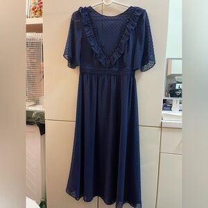 & Other Stories Holiday EveningNavy Swiss Dot Open Back Ruffle Midi Dress Size 6