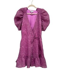 & Other Stories Jacquard Puff Wrap Floral Mini Dress Pink Size M