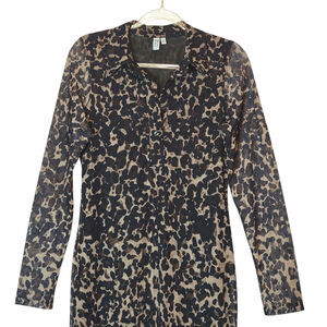 & Other Stories Leopard Animal Print Polo Midi Dress Slim Fitting Chic Black Brown 6
