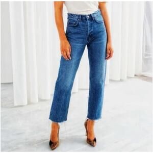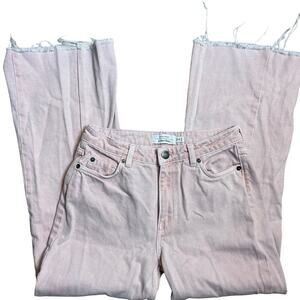 & Other Stories Light Pink High-Rise Frayed Hem Straight Leg Ankle Denim Size 26