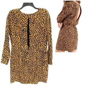 & Other Stories Long Sleeve Leopard Print Mini Dress Size 10 Gold Black Cheetah