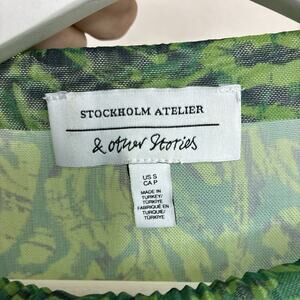 & Other Stories Long Sleeve Pleated Mesh Green Midi Dress S