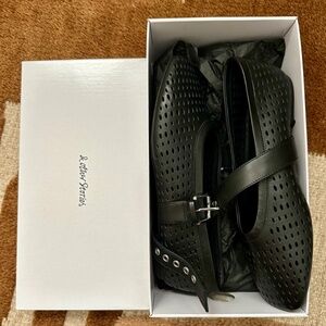 & Other Stories Mary - Jane Ballet Flats Perforated black leather Size 8