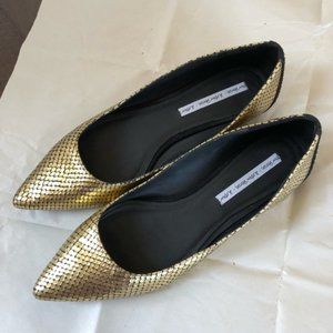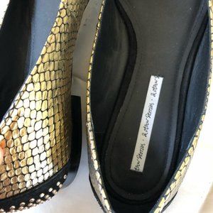 & Other Stories Metallic Gold, Pointed Toe, Reptile Flats Sz 38 w/ Studs on Heel