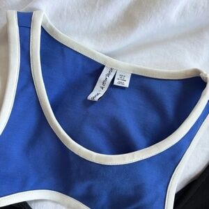 She’s in her sporty girl era. Love the high neck while showing a bit of chest. Sleeveless. Slight stretch. Material tag is cutout - but is 78% Lyocell, 19% Polyamide, 3% Elastane. New without tag.