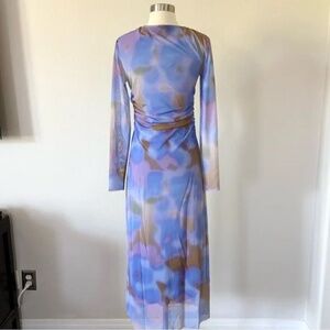 & Other Stories NWT Sheer Mesh Midi Dress Blurred Abstract Print Small S