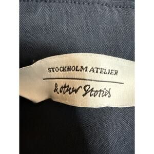 & Other Stories Navy Blue Short Sleeve Button Down Tunic Mini Shirt Dress Size 4