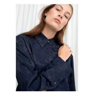 & Other Stories Navy Floral Jacquard Button Down Top Size 2 NWOT