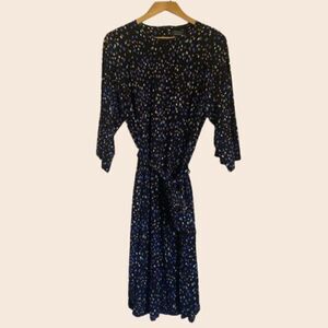 & Other Stories Navy Midi Dress w/ Multicolor Polka Dots and Wrap Waist Size 8