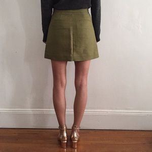Adorable olive green mini skirt from & Other Stories. Worn once or twice. In amazing condition. Features a zipper down the front of the skirt with a snap button and two pockets. The pockets in the back are fake.