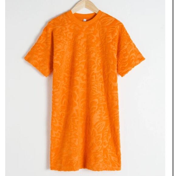 & Other Stories Orange Terry Leaf Print T Shirt Dress Size 0 NWOT