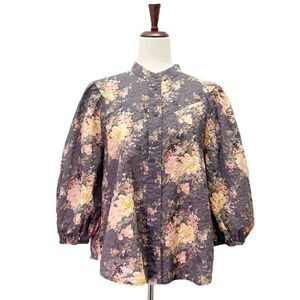 & Other Stories Paris Atelier Cottage Floral Gray & Pink Cotton Blouse Size 8