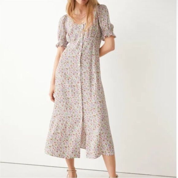 & Other Stories Printed Button Up Midi Dress Floral rayon NWT 10