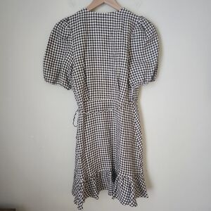 & Other Stories | Puff Sleeve 100% Linen Gingham Wrap Mini Dress - Size 2