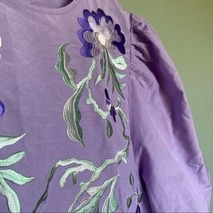 Charming mini dress with floral embroidery. Features short sleeves and a tiered skirt. Perfect for a stylish look.