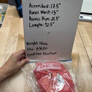 Across Bust: 17.5", Across Waist: 15", Across Hips: 21.5", Length: 32.5"