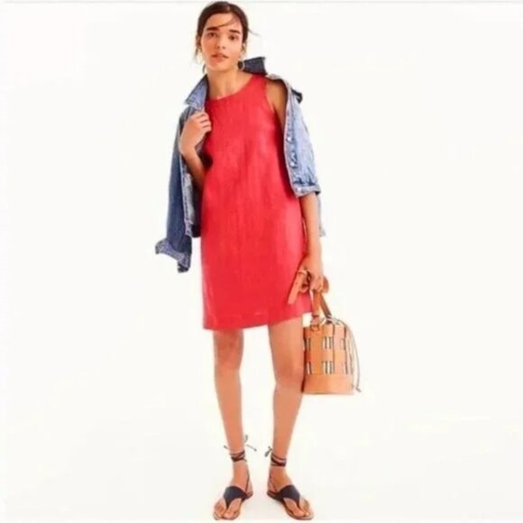 & Other Stories Red Sleeveless Shift Christmas Holiday Textured Mini Casua Dress