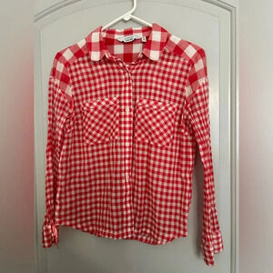 & Other Stories Red and White Gingham Print Button Down Blouse sz 4