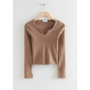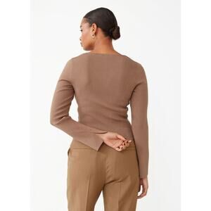 & Other Stories Ribbed Fitted Sweetheart Neck Long Sleeve Top Brown Size M