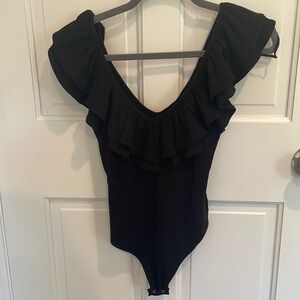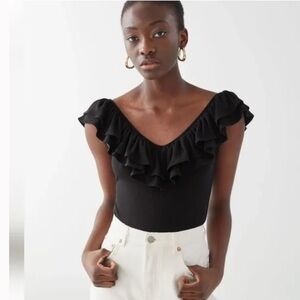 & Other Stories Ribbed Ruffle Bodysuit in black. New with tags. Size XS. Has a good amount of stretch.