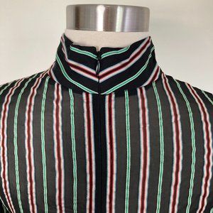 Black base with red and green chevron stripes on the torso with vertical stripes on the arms and back