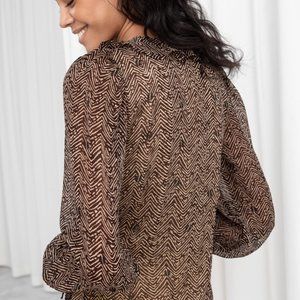 Other Stories Sheer Coffee Bean Print Wrap Blouse