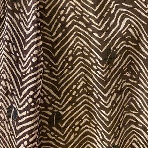Worn once! So adorable but didn't flatter my figure. Long sleeve, billowy blouse with a wrap side tie, cinched balloon sleeves and a ruffled plunging neckline. It is a lovely chocolate brown color with an interesting pattern. Would look incredible with cropped straight legs jeans and boots. A perfectly autumnal top.