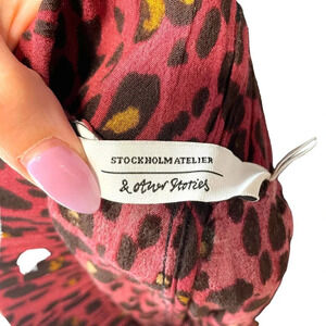 & Other Stories Shorts Leopard Cheetah Print Drawstring Pull-On Maroon Size US 6