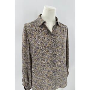 & Other Stories Silk Floral Blouse Long Sleeve Top Button up Shirt White 4 S